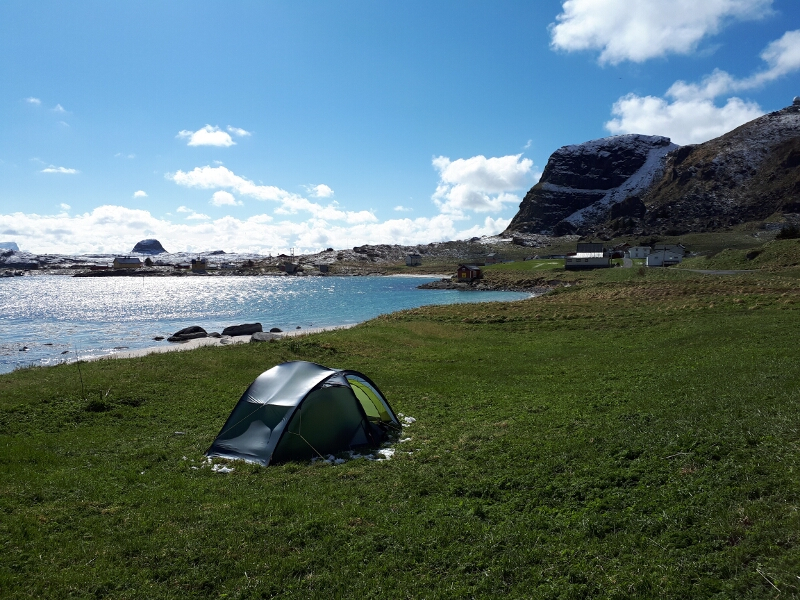 Sun dries the tent from last nights snow